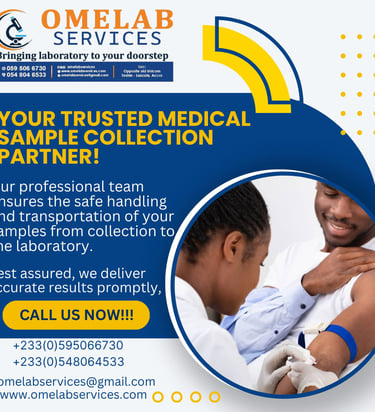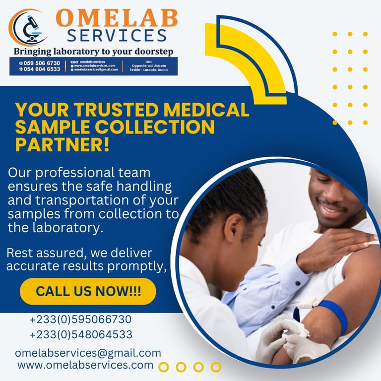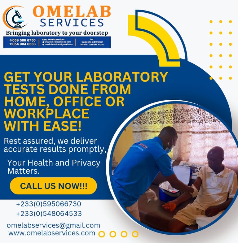 I wanted to do a lab test but I was too busy to go the lab. A friend introduces omelab service to me and I called them. They came home quickly with their equipment and took my test samples to the laboratory. Few hours later they delivered my test reports. I didn't stress myself going to the lab but I did my tests whiles at home. Thanks to omelab, I love their services and I recommend to everyone.