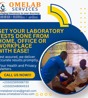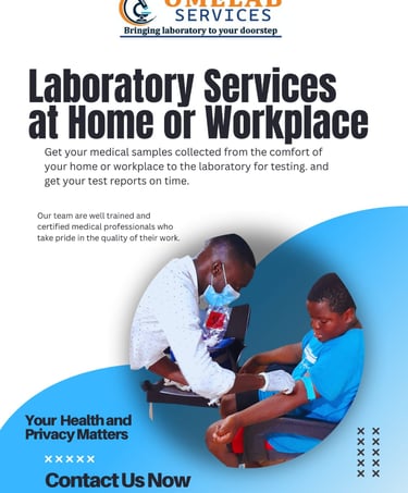 LET US TAKE CARE OF YOUR MEDICAL LABORATORY NEEDS AT THE COMFORT OF YOUR HOME, OFFICE OR WORKPLACE WITHOUT STRESS